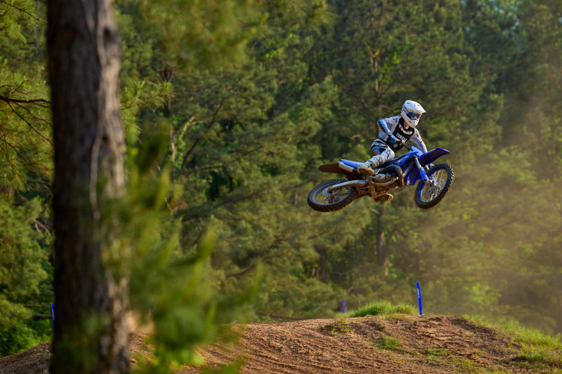 Les organes internes du moteur ultra légers et le fameux système YPVS (Yamaha Power Valve System) de Yamaha, qui dope le couple, garantissent une puissance élevée, tandis que la carrosserie ultra fine vous confère un haut niveau de contrôle, aussi bien au sol que dans les airs. Lorsque vous freinez et accélérez fort, la selle plate et la position conçue pour la compétition permettent un transfert facile du poids du corps sur la moto au moment où vous entrez dans la victorYZone !