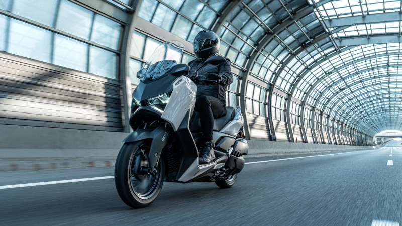 Pour une meilleure protection, le XMAX 300 Tech MAX+ est équipé d'un pare-brise électrique offrant un réglage progressif de 95 mm, tandis que les clignotants avant et le saute-vent redessinés réduisent également les effets du vent. Le guidon réglable et les marchepieds spacieux permettent également aux pilotes du XMAX 300 Tech MAX+ de trouver la configuration idéale.